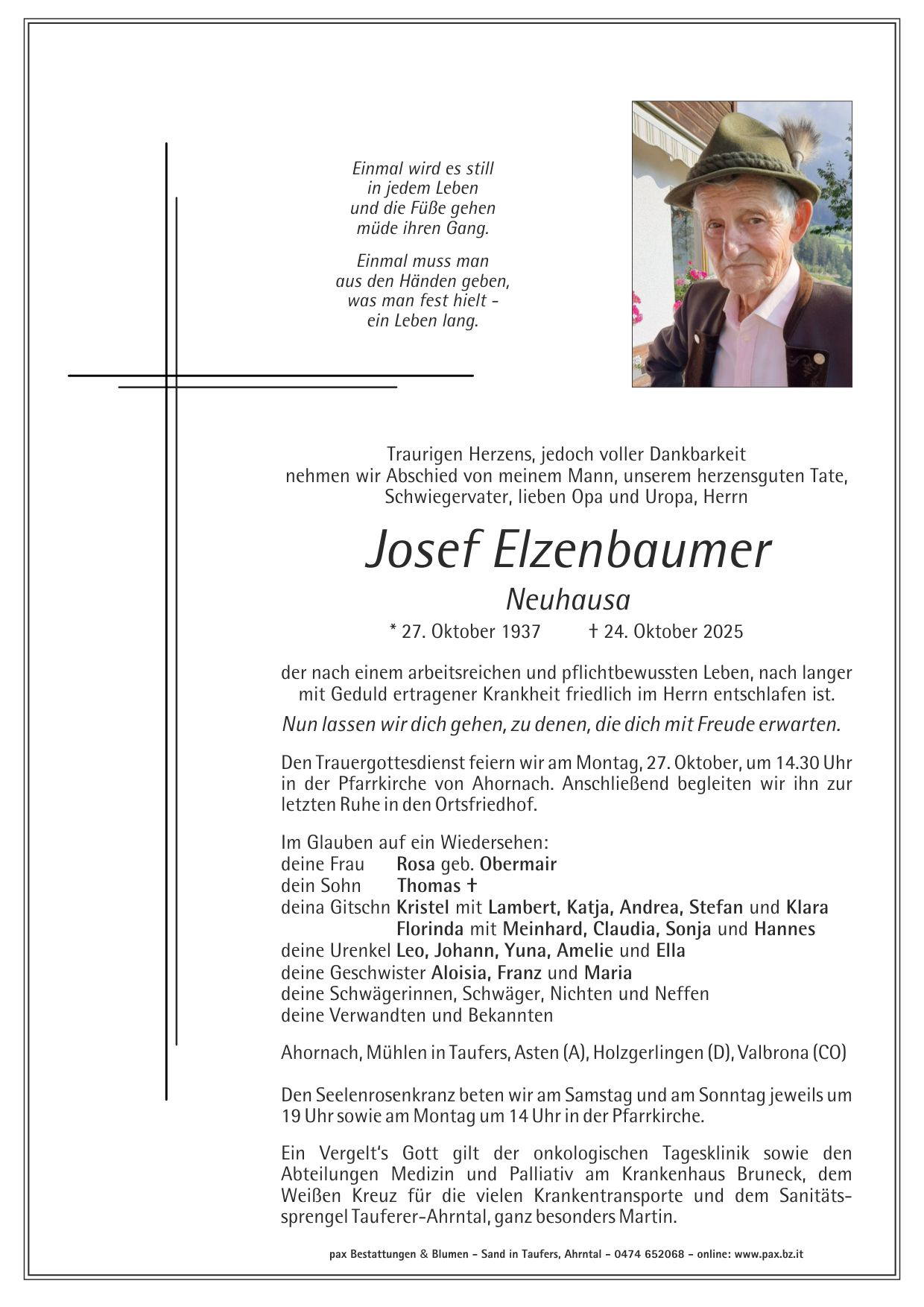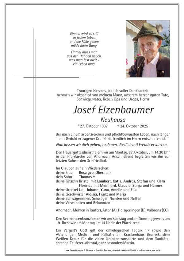 Unser aufrichtiges Beileid der Trauerfamilie! Seppl, Ruhe in Frieden