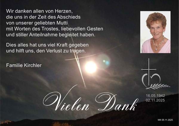 Wer zu Gott heimkehrt..bleib in der Familie ..so auch eure liebe Mutti!! Liebe Johanna worsch so a feina und herzlicha Frau! Ruhe nun in Gottes Frieden und beschütze deine Lieben! Den Trauerfamilien unsere herzliche Anteilnahme und viel Kraft in der so schweren Zeit!
