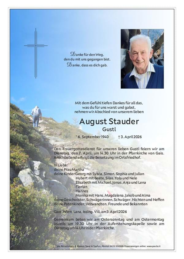 Herzliches Beileid der Trauerfamilie.Ruhe in Frieden Gustl