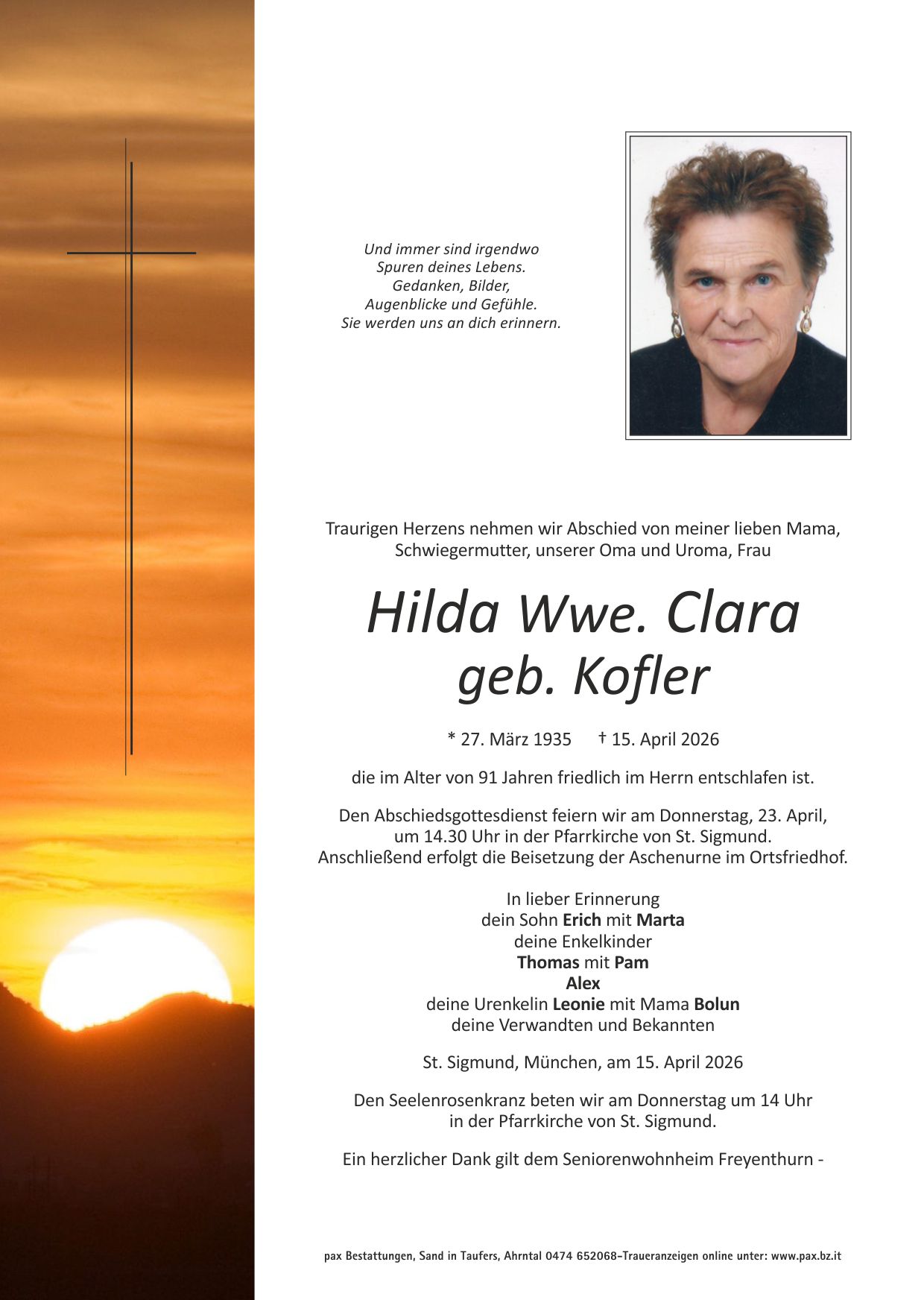 16.04.2026 - pax Bestattungen & Blumen