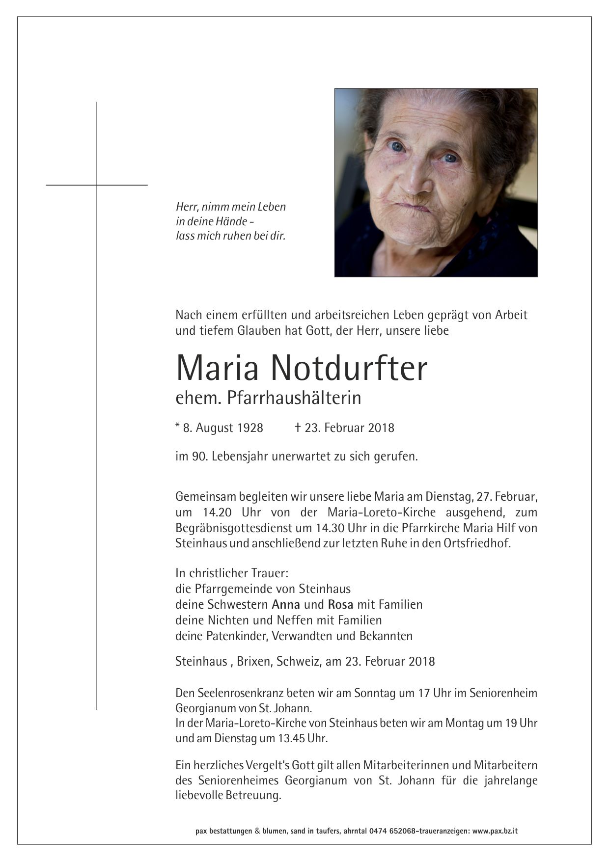Notdurfter - ehem. Pfarrhaushälterin