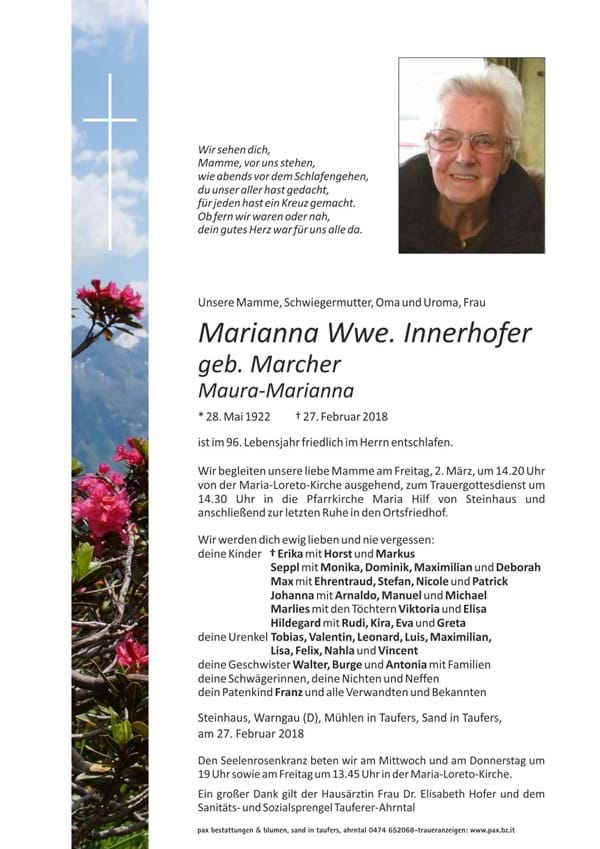 Wwe. Innerhofer geb. Marcher - Maura-Marianna