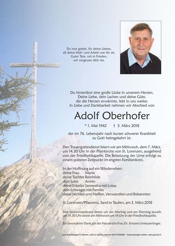 Ruhe in Frieden Adolf. Danke für alles. A Liochtl für di vo deina leschta Reise.